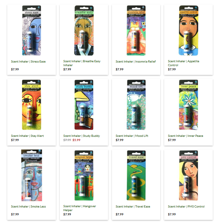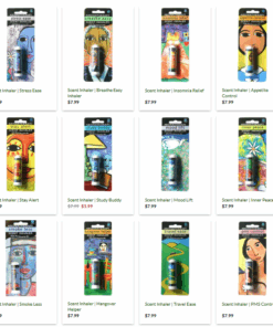 Included scents: Stress Ease, Breathe Easy, Inner Peace, Mood Lift, Study Buddy, Stay Alert, Insomnia Relief, Appetite Control, Hangover Helper, and Smoke Less, Abundance, Attraction.